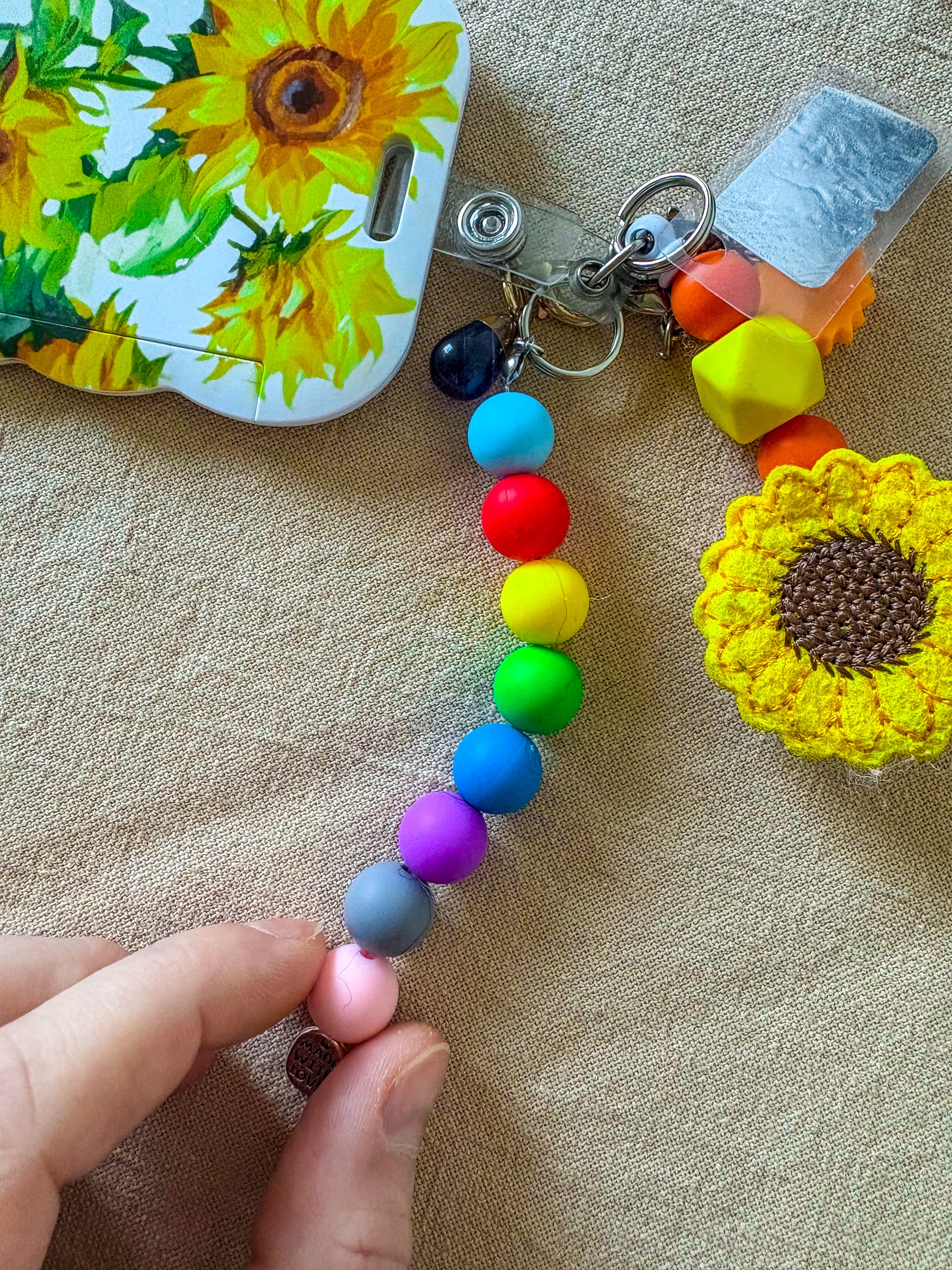 Nyckelring med silikonpärlor som visar ordningsföljden av rör vid venösa blodprover.